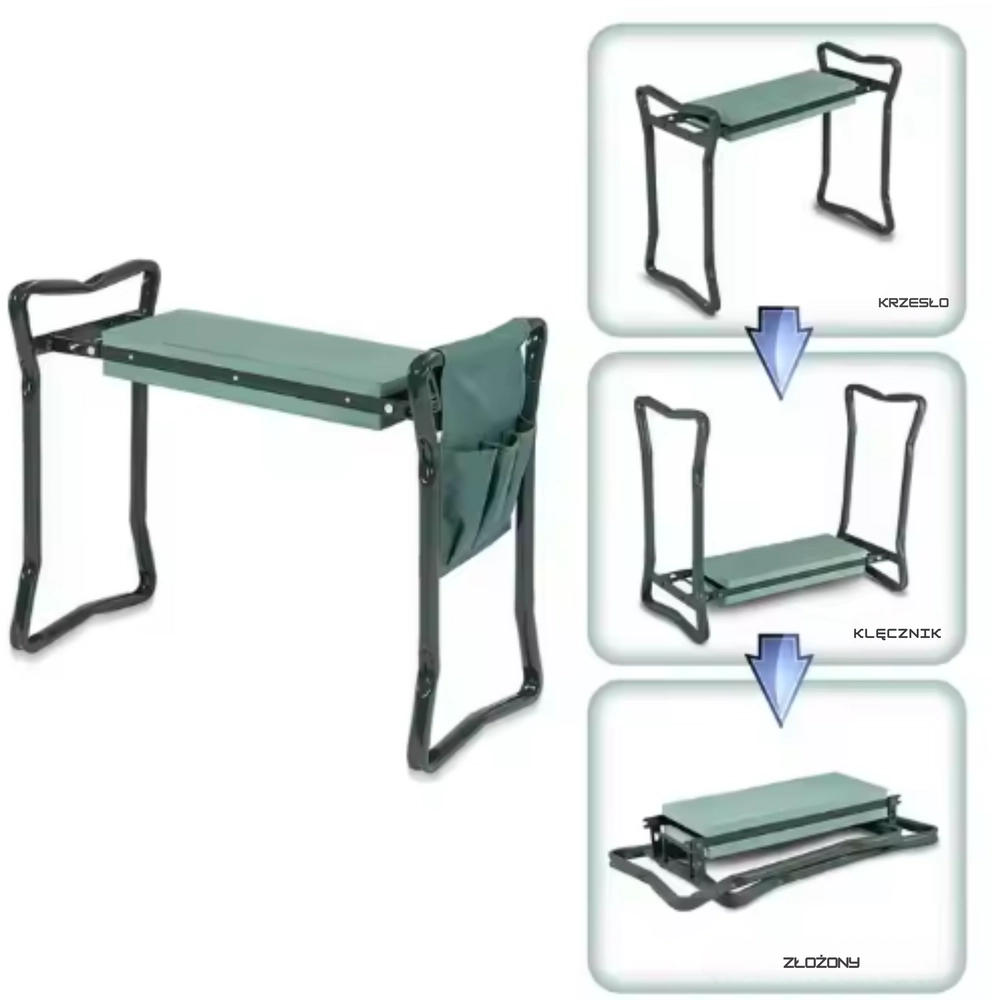 Takket være 3i1-funktionen kan du bruge knæleren som en skammel til plantning, knæler til lugning eller sæde til afslapning. Den bløde skumpude af EVA er perfekt til komfort for dine knæ. Sammenklappelig konstruktion muliggør nem transport og opbevaring.