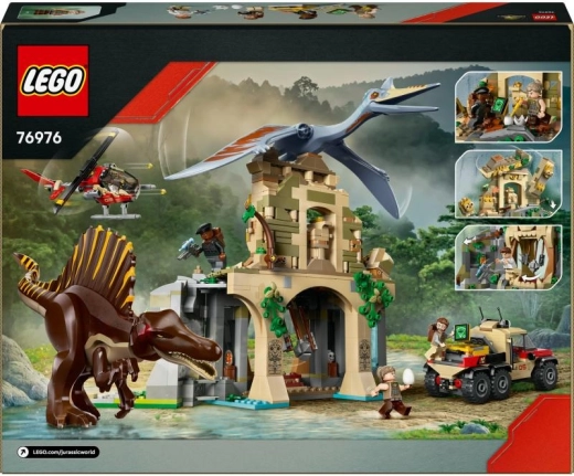 Oplev filminspireret jungleaction: et oldgammelt tempel med vandfald gemmer på et ægrede, hemmelige passager og en fælde udløst af en kæde. Den bevægelige Spinosaurus (ben, forpoter, hale, hoved og kæbe) og majestætiske Quetzalcoatlus (vinger og kæbe) giver realistiske scener med forfølgelse og redning.