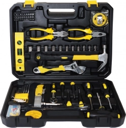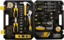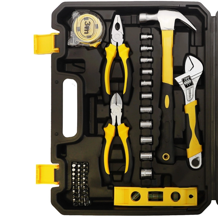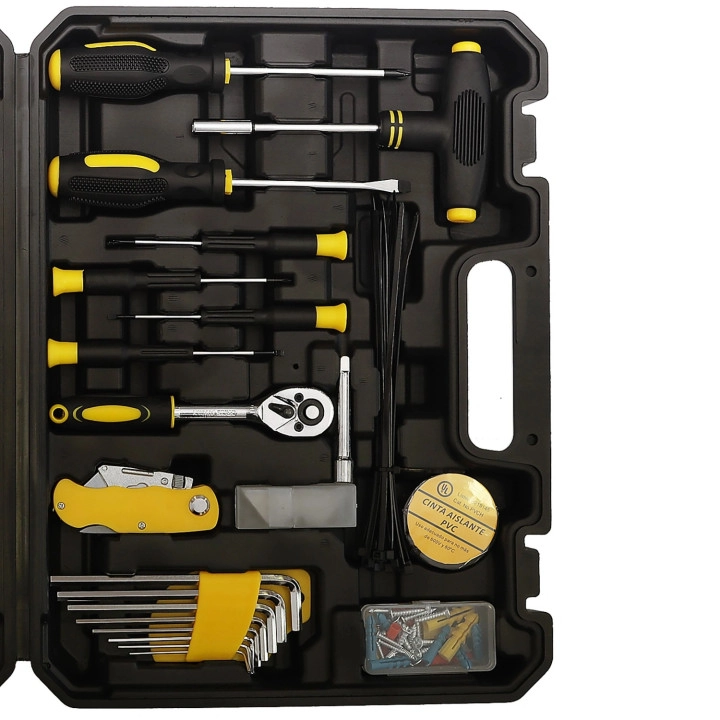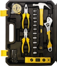 Dette sæt indeholder alt nødvendigt til daglige opgaver som montering af møbler, reparation af cykel, udskiftning af stikkontakt eller ophængning af billeder. Opbevaring i en solid kuffert med formede rum sikrer nem organisering og sikker transport. Værktøjet lavet af kulstofstål og krom-vanadiumstål giver lang levetid og pålidelighed i mange år.