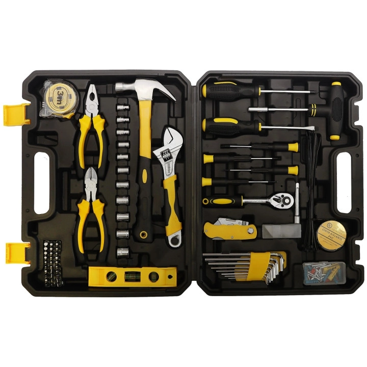 Sættet indeholder forskellige skruetrækkere, skraldenøgle, nøgler og andre vigtige værktøjer nødvendige til hjemlige og værkstedsopgaver. Det er ideelt til gør-det-selv-entusiaster og sikrer, at du altid har det rigtige værktøj ved hånden.