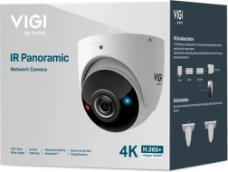 VIGI InSight-kameraet med 180° panoramavisning og 4K-opløsning er ideelt til store områder, hvor det kan reducere omkostninger forbundet med installation af flere enheder. Aktiv forsvarsteknologi med blinkende rød-blå lys og lydalarmer afskrækker effektivt indtrængere.