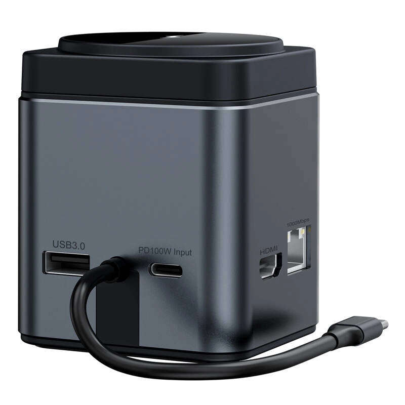 Trådløs opladning: Stationen understøtter trådløs opladning med en effekt på 15 W, velegnet til moderne smartphones og andet tilbehør.