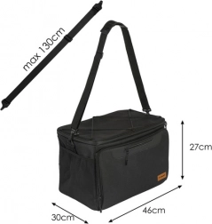Taskens tekniske parametre inkluderer dimensioner på 46 × 27 × 30 cm og dens sorte farve. Ydersiden er lavet af oxford-stof, mens den indvendige belægning består af aluminiumsfolie kombineret med oxford-stof.