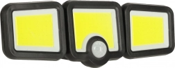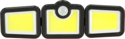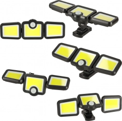 Solcelledrevet LED-projektør 3-i-1 kombinerer tre vipbare lys paneler med en følsom bevægelsessensor og skumringssensor. Placer solpanelet et sted med godt sollys og nyd trådløs belysning uden kabelrod og elregninger. Efter opladning kan den lyse i op til 10 timer.