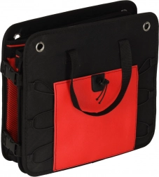 Elegant sort og rød design giver et stilfuldt udseende. Organizeren er sikkert pakket i en beskyttende folieindpakning.
