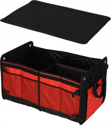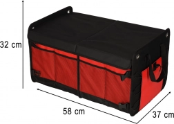 Organizeren til bilens bagagerum er en fremragende hjælper for enhver chauffør. Den udmærker sig med sin kapacitet på op til 60 liter, hvilket muliggør effektiv fordeling af tingene. Aftagelige skillevægge med velcro hjælper med at tilpasse det indre rum efter dine behov. Universelt materiale polyesterstof oxford sikrer lang levetid og modstand mod snavs.