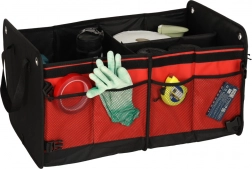 Produktets egenskaber inkluderer robuste håndtag for nem transport og velcro på bunden, som forhindrer organizerens bevægelse i bagagerummet. Sideclips letter samling og opbevaring. Ni lommer giver tilstrækkelig opbevaringsplads, mens elastiske stropper muliggør sikker fastgørelse.