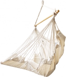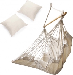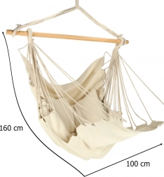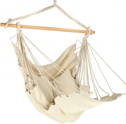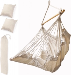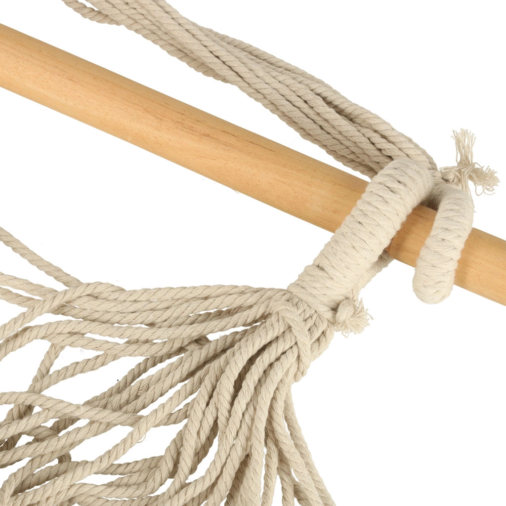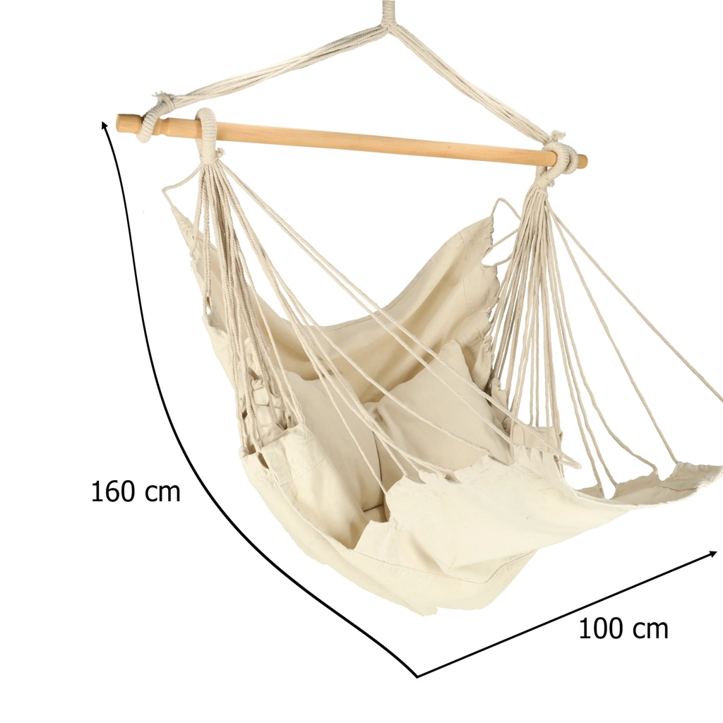 Denne hængende møbel passer til boho-design og kan også placeres i haven eller på sommerhuset. Materialet er behageligt at røre ved og hjælper med at mindske stress. Pakken indeholder stol, træstang, hængende snore og to behagelige puder. Tilføj et stykke ro og komfort til dit liv.