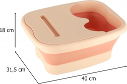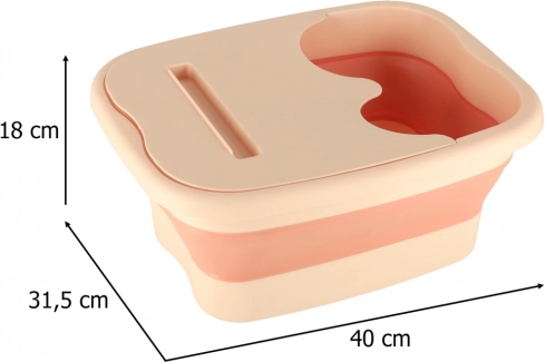 Denne massagebalje til fødder er en fantastisk løsning for dem, der søger en bekvem måde at slappe af på efter en lang dag. Den er lavet af kvalitetsplast i elegante beige og laksefarvede toner, og den tilbyder ikke kun et flot udseende, men også praktisk funktionalitet.