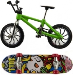 Dette kompakte sæt kombinerer en finger-BMX cykel og et skateboard, så børn kan afprøve forskellige kørestile og tricks. Mini-modellerne er detaljeret udført, har bevægelige hjul og letbetjente elementer til gnidningsfri udførelse af tricks på bordet, bænken eller hjemmelavede forhindringer.