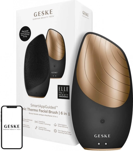 Geske Sonic ansigtsbørste 6-i-1, kåret af ELLE som en skønhedsinnovation, leverer komplet hudpleje. Takket være SmartSonic-teknologi med op til 18 vibrationsniveauer muliggør den dybderens, toning og massage af huden, hvilket modvirker rynkedannelse og åbner porerne til efterfølgende behandling. Velegnet til alle hudtyper.