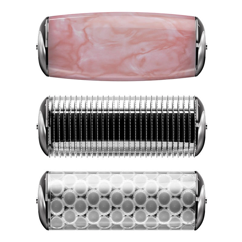 Takket være et gennemtænkt design er rullen sikker og effektiv. Den er fremstillet af dermatologisk testet silikone og muliggør nem magnetisk opladning. De tre udskiftelige hoveder – nålehoved, kvartshoved og kølehoved – giver forskellige muligheder for hudpleje.