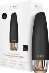 Geske mod aldring og hudfornyelse 9-i-1 er et massageapparat til ansigtet, som forbindes med GESKE Beauty Tech-appen og leverer en personlig behandling. Det tilbyder funktioner som MicroCurrent Pro Face-Lift, Full-Spectrum Power-LED Light og Advanced RF Heated Wavelengths.