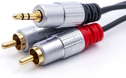 Kabel Qoltec 2x RCA til 3.5mm Jack muliggør overførsel af lydsignaler mellem smartphone, MP3-afspiller, computer og andre lydudstyr med RCA-indgang. Forgyldte kontakter sikrer den højeste lydkvalitet og beskyttelse mod korrosion.