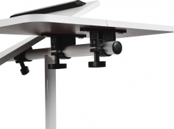 En enestående funktion er uafhængig vinkeljustering af begge plader op til 90°. Den større plade er perfekt til en bærbar, mens den mindre kan bruges til mus, dokumenter, tablet eller en kop kaffe. Dette muliggør ergonomisk opsætning for lindring af ryg og håndled.