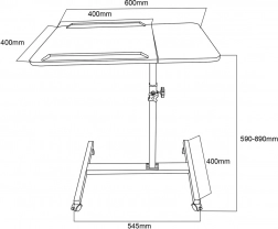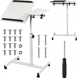 Det mobile bord til bærbar Maclean kombinerer ergonomi og mobilitet. Med højdejustering fra 59 til 89 cm tilpasser det sig dine behov og arbejdspreferencer. Det er ideelt til enhver miljø, hvad enten det er hjemme eller professionelt. Justerbar vinkel på dobbelt plader øger komfort og gør det nemt at organisere din arbejdsområde.