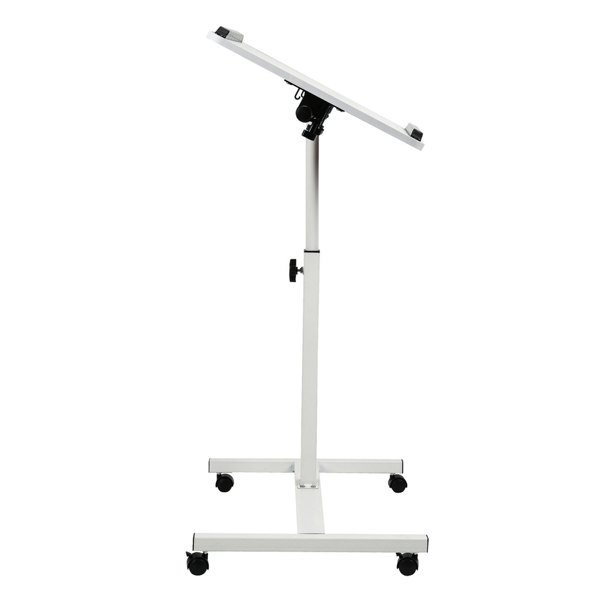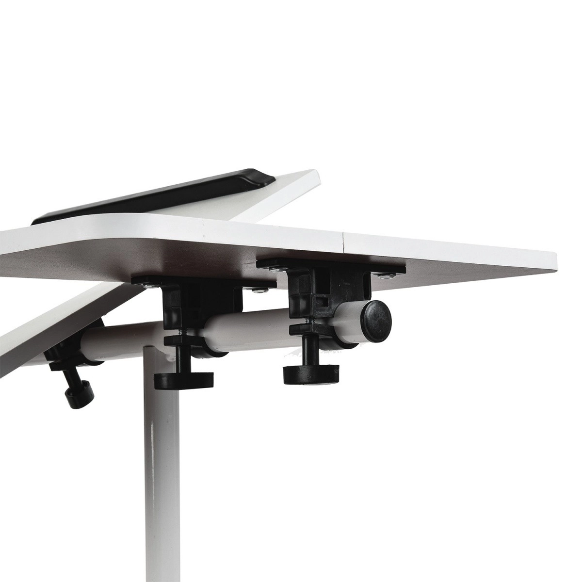 Bordet er udstyret med fire hjul for nem bevægelse og to låsemekanismer for stabilitet. Dette sikrer, at bordet bliver på plads selv ved stor vinkelindstilling, hvilket tilbyder den perfekte mobile arbejdsmiljø.