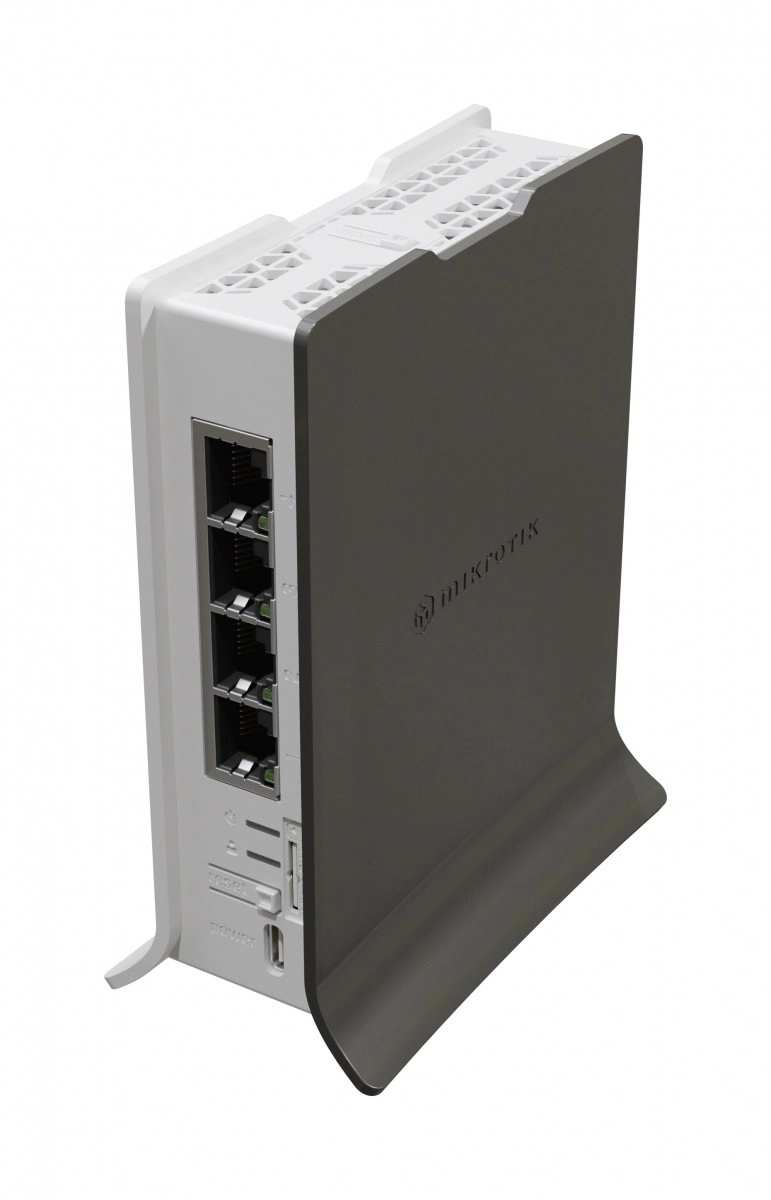 Fremragende konnektivitet: hAP ax lite LTE6 er udstyret med fire Gigabit Ethernet-porte og understøtter trådløs 2,4 GHz Wi‑Fi 6, hvilket muliggør hurtig og stabil forbindelse i hele dit hjem eller kontor.