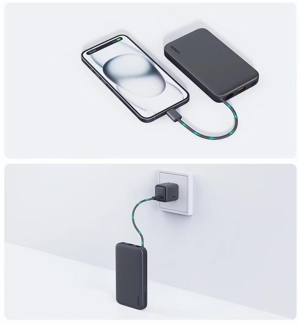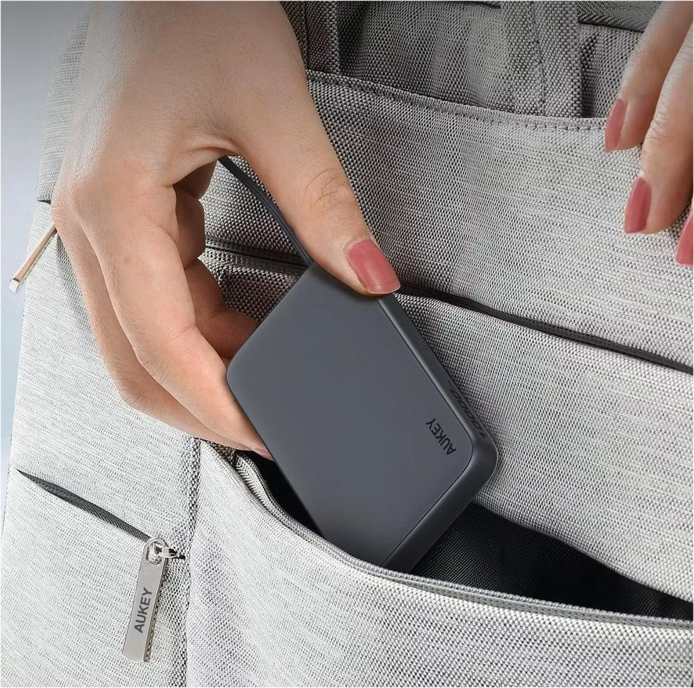 Powerbanken Aukey Spark Sling tilbyder en kapacitet på 10000mAh og hurtigopladning op til 22,5W med mulighed for at oplade op til tre enheder samtidigt.