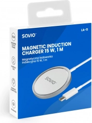Kompatibilitet med Qi og MagSafe: Ved at bruge Qi 1.2-standarden understøtter Savio LA-11 nemt trådløs induktionsopladning. Det indbyggede magnetsystem er ideelt til enheder med MagSafe-funktion, hvilket sikrer stabil og præcis tilslutning.