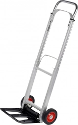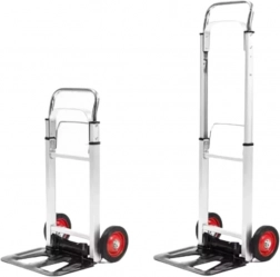 Transportvognen er udstyret med teleskophåndtag, sammenklappelig platform og et automatisk låsesystem, som sikrer hurtig klargøring til brug og kompakt opbevaring. Hele enheden suppleres af robuste gummihjul på stålaksler med lejer, som ikke beskadiger underlaget og sikrer jævn kørsel.
