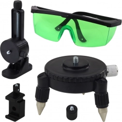 Pakningen inkluderer mange monteringsudstyr, herunder beslag, to batterier, fjernbetjening, hæveplatform og en solid transportkuffert med støddæmper skum. Perfekt valg til fliser, møbelmontage, niveaubestemmelser ved trapper, lofts konstruktioner og ved væg dekoration.
