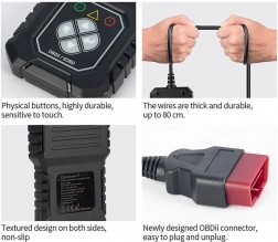 Med denne enhed kan du hurtigt kontrollere og løse problemer og dermed undgå dyre diagnostikker hos værkstederne. Testeren giver adgang til køretøjsoplysninger som VIN, kalibrerings-ID og kalibreringsbekræftelsesnummer (CVN).