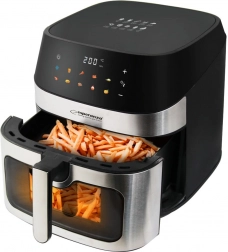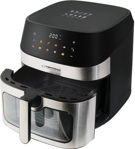 Det store vindue gør det let at overvåge tilberedningen. Temperaturregulering og timer muliggør forskellige bagetider. Gummifødder med skridsikker effekt sikrer stabilitet under brug, og det moderne design passer perfekt i ethvert køkken.