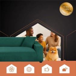 Betrækket er lavet af blød og elegant velour, som er meget elastisk og strækbar. Takket være de indsyede elastikker sikres en stabil fastgørelse på sofaen.