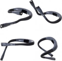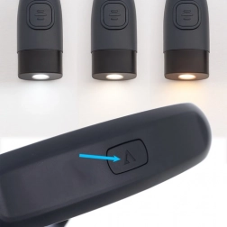 - Kraftig belysning: Lampen er udstyret med to fleksible arme med LED-dioder, som giver et tilstrækkeligt stærkt, men ikke blændende lys direkte på bogen.
