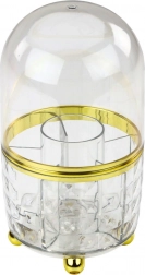 Organizeren er lavet af holdbar plast i glaslook og prydet med en elegant gylden finish. Indvendigt finder du praktiske rum til organisering af børster, læbestifter, mascaraer og små accessories.