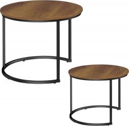 Det store bord måler 60 x 45 cm og tilbyder en rummelig overflade, ideel til kaffe, bøger eller dekorationer. Det lille bord på 40 x 40 cm egner sig perfekt som sidebord ved sofa eller lænestol. Begge borde er fremstillet af robuste materialer: bordplade i holdbar MDF i naturtræslook og stel i sort pulverlakeret metal, hvilket tilfører elegance og et industrielt udtryk.
