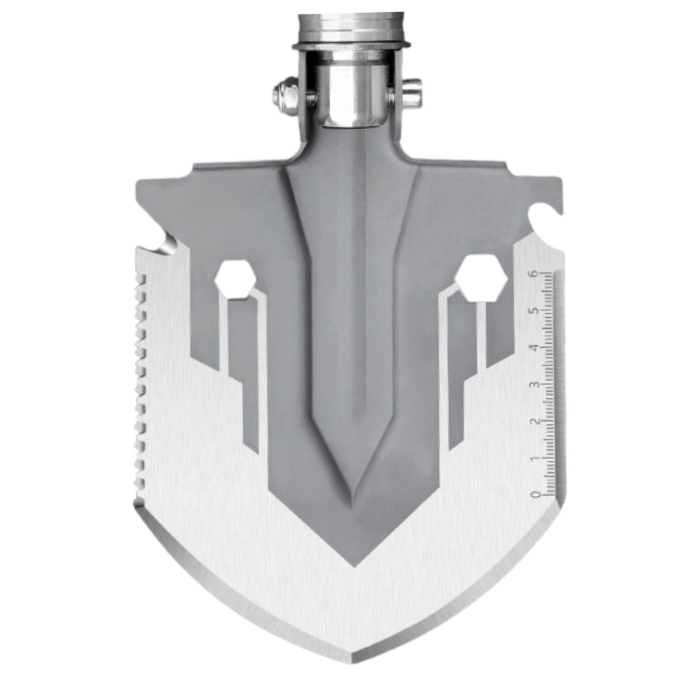 Den sammenklappelige militær spade er lavet af højkvalitetsstål og dens modulære håndtag af holdbar aluminiumslegering sikrer et komfortabelt greb og kan også bruges som selvforsvarsslag. Spaden består af tre segmenter på ca. 17 cm, så når den er foldet, fylder den meget lidt – kun 25 cm i længden. Når den er foldet ud, når den op til 68 cm, hvilket sikrer en komfortabel og ergonomisk arbejdsposition.