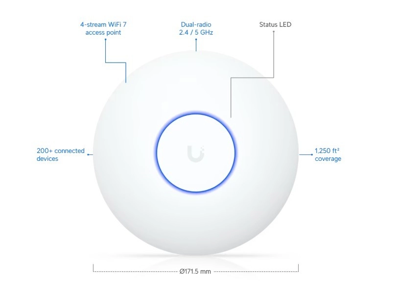 Adgangspunkt U7-Lite er designet til at levere højhastigheds og stabil trådløs tilslutning. Med WiFi 7 teknologi tilbyder det: