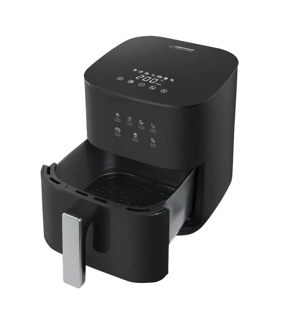 Varmluftsfrituren Esperanza PATATE FRITTE er det perfekte valg for dig, der vil nyde smagen af friturestegt mad i en sundere version. Den gør det let at tilberede sprøde pommes frites og saftig kylling uden olie – enkelt og velsmagende.