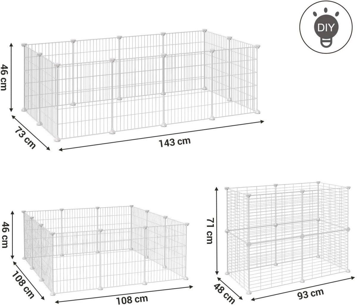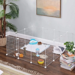 Giv dit kæledyr et sikkert område med denne modulære indhegning, som er ideel til hamstere, marsvin, pindsvin og andre små gnavere. Den gitterbaserede konstruktion med mellemrum på kun 2,5 cm forhindrer, at kæledyrene smutter igennem, og sikrer pålidelig beskyttelse. Metalpanelerne muliggør god luftgennemstrømning og giver konstant overblik over dit kæledyrs bevægelser.