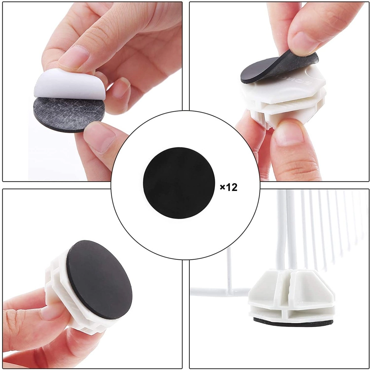 Skridsikre puder inkluderet i sættet forhindrer effektivt glidning på glatte overflader som fliser og laminat og giver en stabil og sikker løsning til daglig brug.
