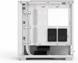Opbevaringsmuligheder med to dedikerede monteringspladser til 2,5"-drev og to kombinerede monteringspladser til 3,5"/2,5"-drev.