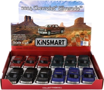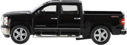 Nyd en detaljeret replika af den ikoniske pick-up CHEVROLET Silverado 2014. Karrosseri i metal med plastdetaljer, præcis lakering og troværdige proportioner vil glæde både små chauffører og samlere. Bilen har åbningsbare døre, så du kan se det gennemarbejdede interiør.