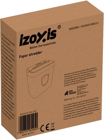 Makulatoren IZOXIS P-4 er designet til dem, der skal beskytte følsomme oplysninger i overensstemmelse med europæiske standarder. Dens sikkerhedsniveau P-4 gør rekonstruktion af dokumenter praktisk talt umulig uden specialudstyr. Den skærer dokumenter i stykker på 4 x 40 mm, hvilket er ideelt til bortskaffelse af personlige og fortrolige oplysninger.