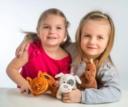 Disse bløde dyr i behagelig plys vil børn forelske sig i med det samme. Når man trykker på maven, udsender de en karakteristisk dyrelyd, som støtter udviklingen af høresansen og fantasien. Takket være den kompakte størrelse på 18–22 cm er de ideelle til små børnehænder og til at tage med på farten.