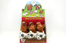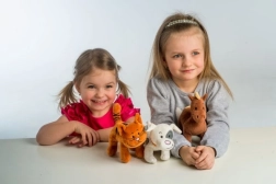 Ved tryk på maven afgiver dyret en autentisk lyd – børn lærer nemt, hvordan en kat miaver, en hund gør, eller en hest vrinsker.