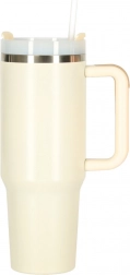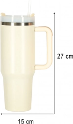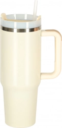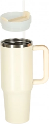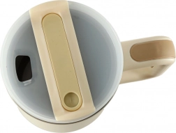 Et pålideligt låg forhindrer spild, mens det ekstra sugerør gør det nemt at drikke, selv når du er i bevægelse. Den ergonomiske hank giver et sikkert greb.