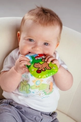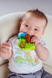 Puden er lavet af sikre materialer uden phthalater og er certificeret til børn fra fødslen. Vælg mellem flere søde dyremotiver, som understøtter visuel stimulering og tidlig genkendelse.