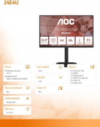 AOC-skærm 24 tommer med en diagonale på 23,8" tilbyder Full HD-opløsning (1920 x 1080) med IPS-teknologi, som sikrer brede betragtningsvinkler på 178° horisontalt og vertikalt. En opdateringshastighed på 120 Hz og hurtig svartid på 4 ms giver et flydende billede uden tearing.