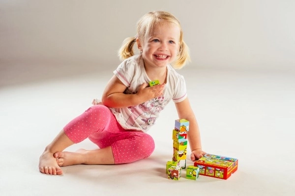 Disse træklodser giver børn sjov ved at samle forskellige billeder fra hjemmemiljøet. Hvert sæt indeholder seks forskellige dyremotiver, som børn kan udforske.