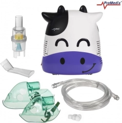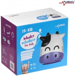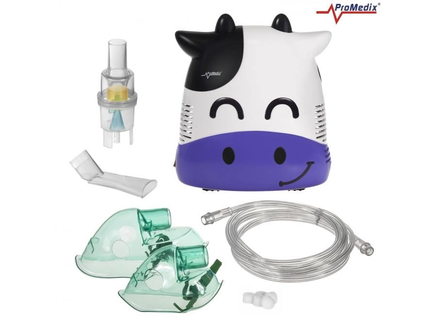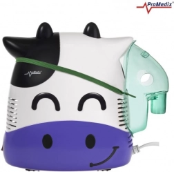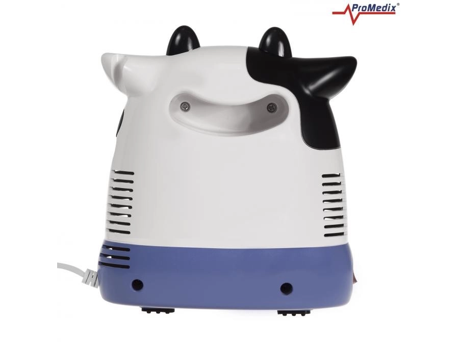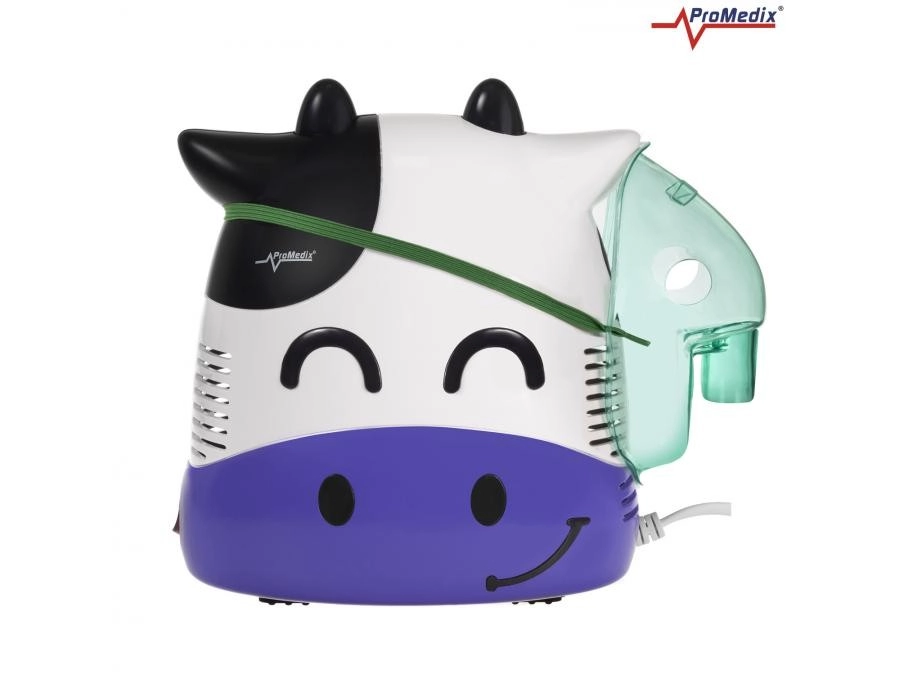 Inhalator Promedix Ko-kalv er specielt designet til børn for at gøre inhalationen mere behagelig med et muntert og venligt udseende. Dette professionelle medicinske udstyr muliggør administration af antibiotika og medicin mod bronkitis. Sikkerheden er sikret med afrundede former uden skarpe kanter og et termisk isoleret kabinet af høj kvalitet.