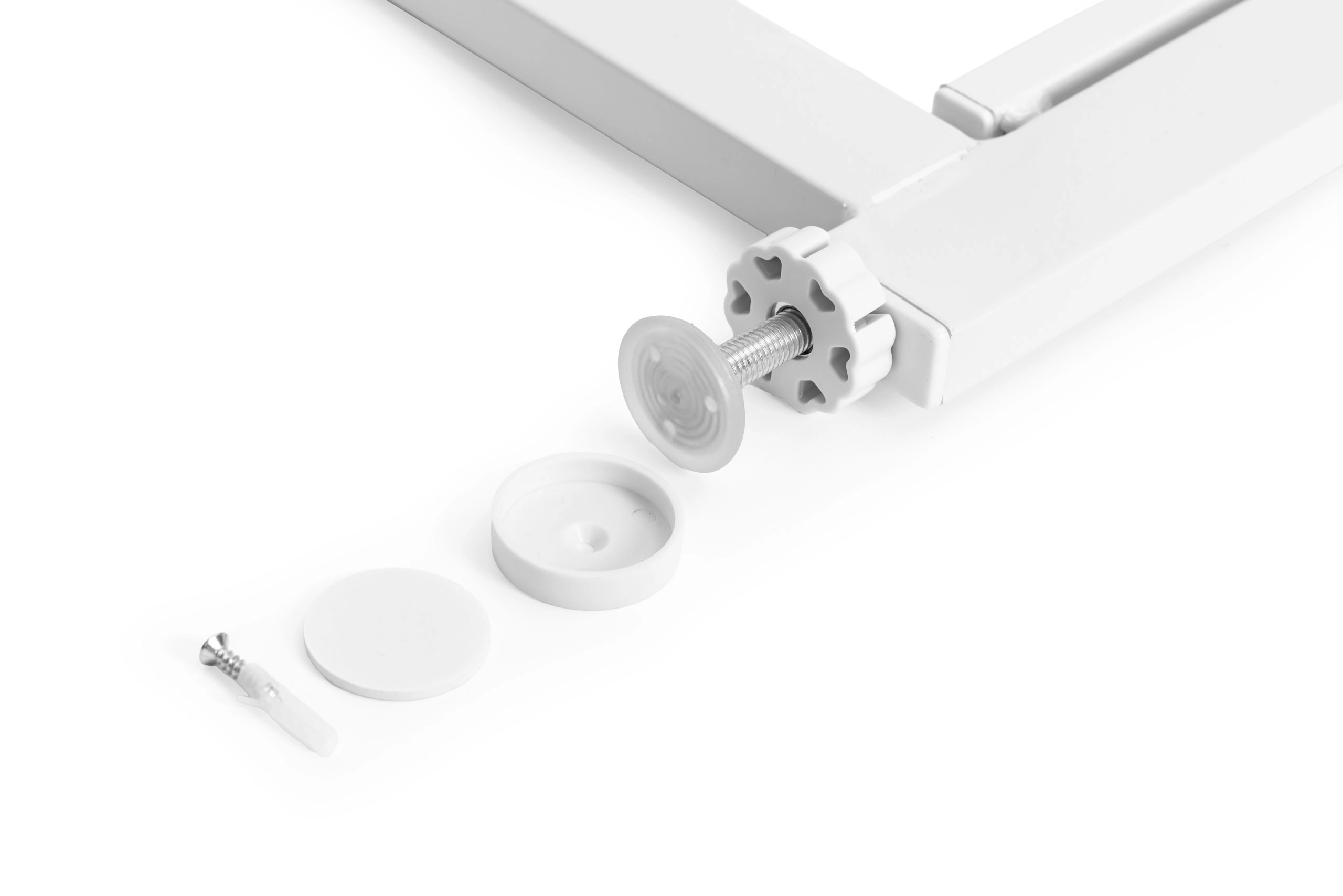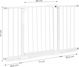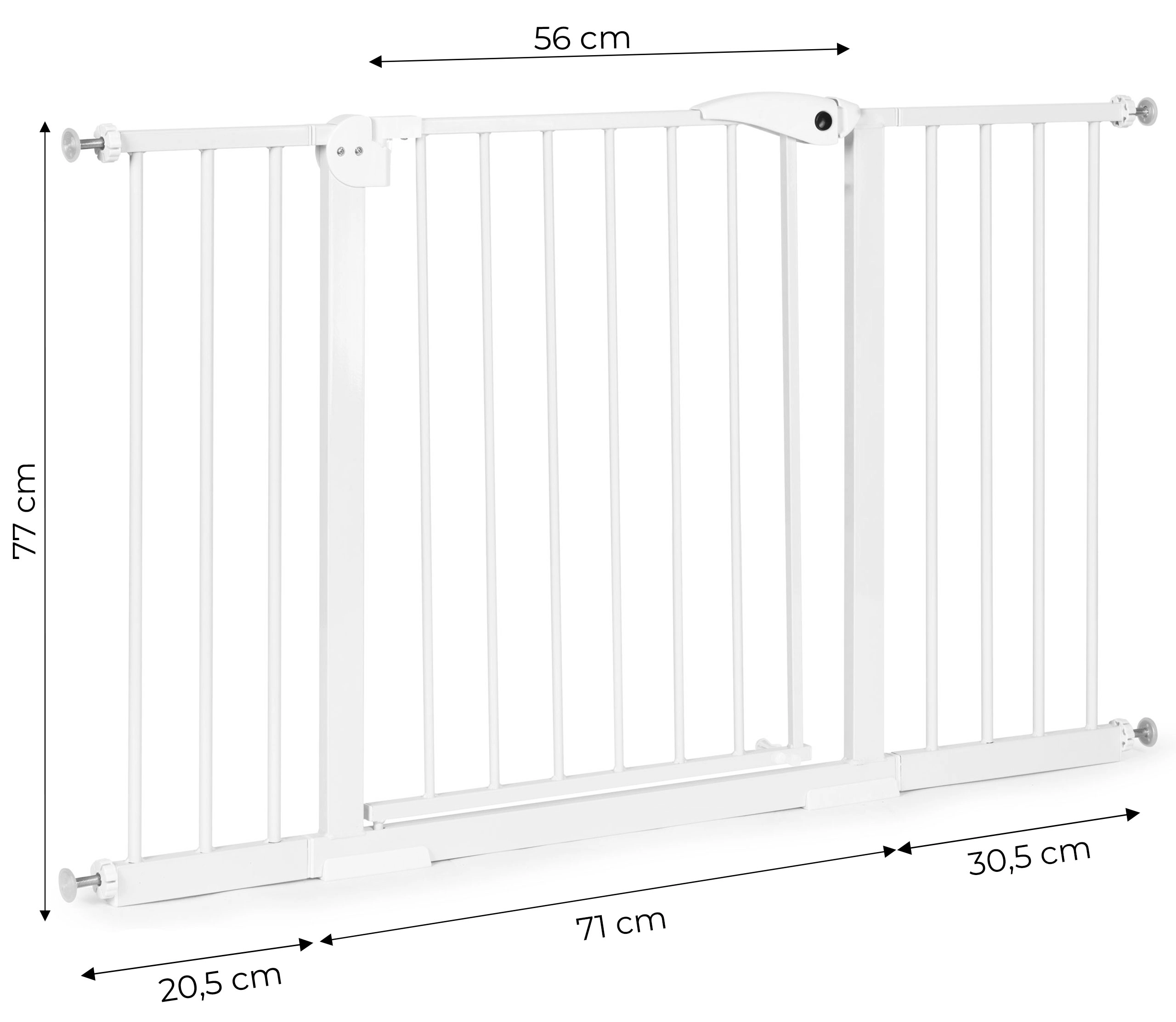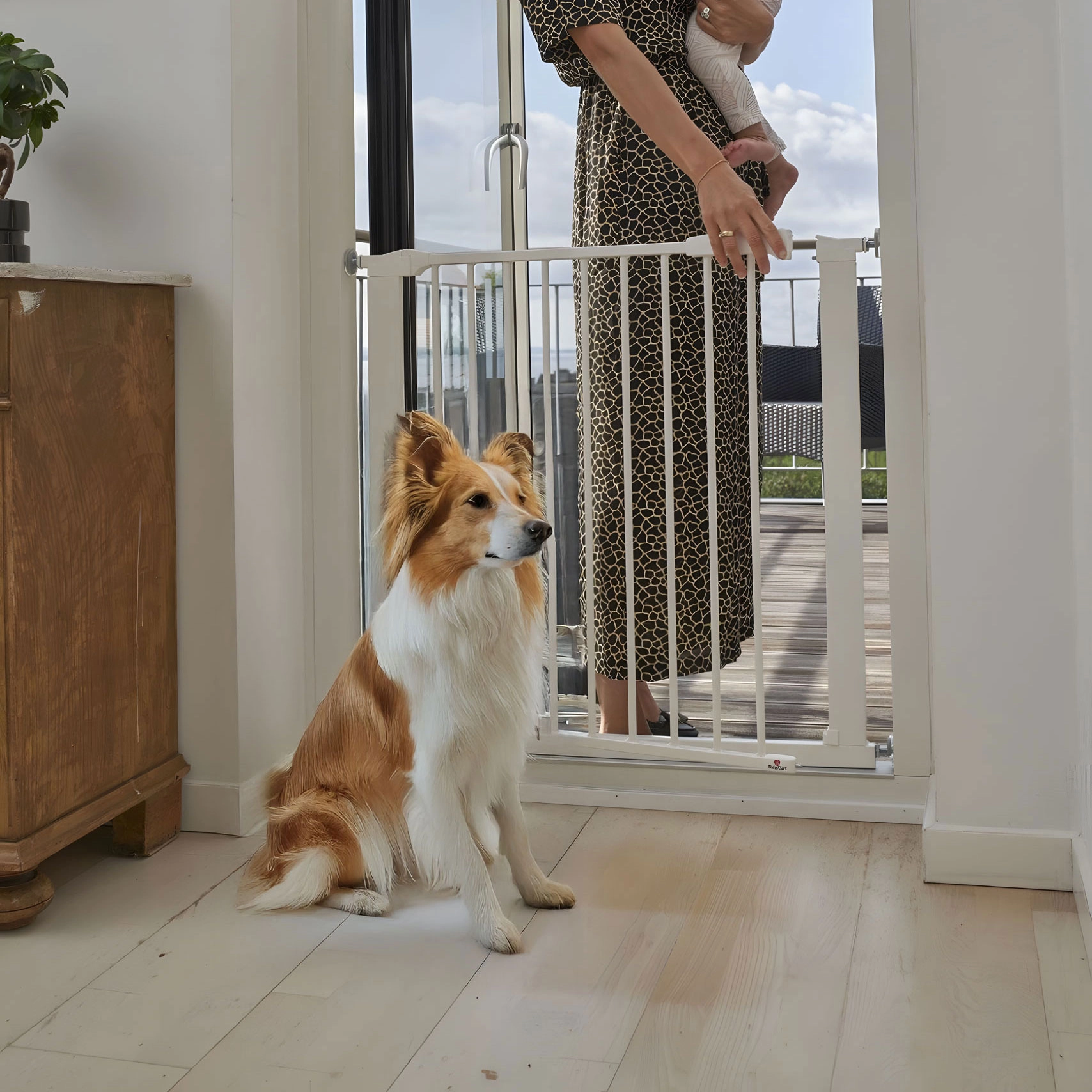 Gitteret tilbyder desuden justerbar bredde fra 74 til 132 cm, så det kan bruges i forskellige døråbninger og trappeopgange.
