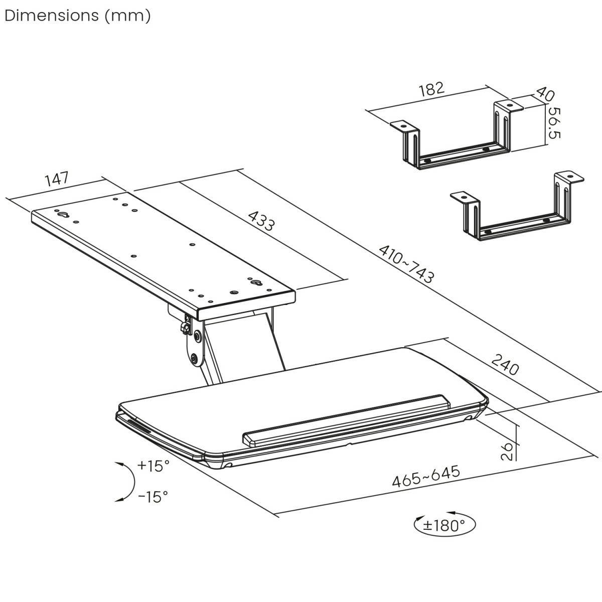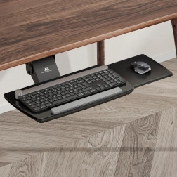 Denne holder er lavet af materialer af høj kvalitet, som garanterer stabilitet og holdbarhed. Den kan bære op til 5 kg, hvilket gør den sikker at bruge med både lette og tungere tastaturer. Funktionaliteten udvides med en udtrækkelig hylde til musen, som kan trækkes ud til både højre og venstre side, ideel for både højre- og venstrehåndede.