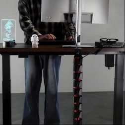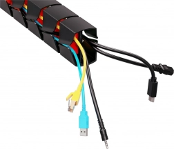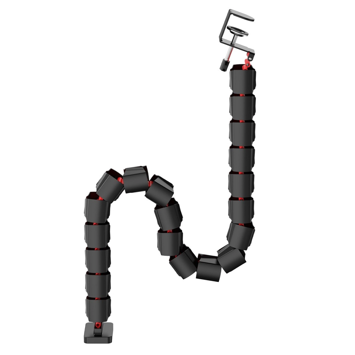 Sorte segmenter med røde led passer perfekt til gaming-stilen og understreger karakteren af din arbejdsplads. Med en længde på 1345 mm er den ideel selv til større borde, og om nødvendigt kan du forkorte længden ved at fjerne enkelte moduler. Denne organisator forbedrer ikke kun udseendet af dit setup, men gør også kabelhåndteringen lettere, hvilket reducerer risikoen for beskadigelse. Det er en lille detalje, der gør en stor forskel, især hvis du går op i orden og stil.